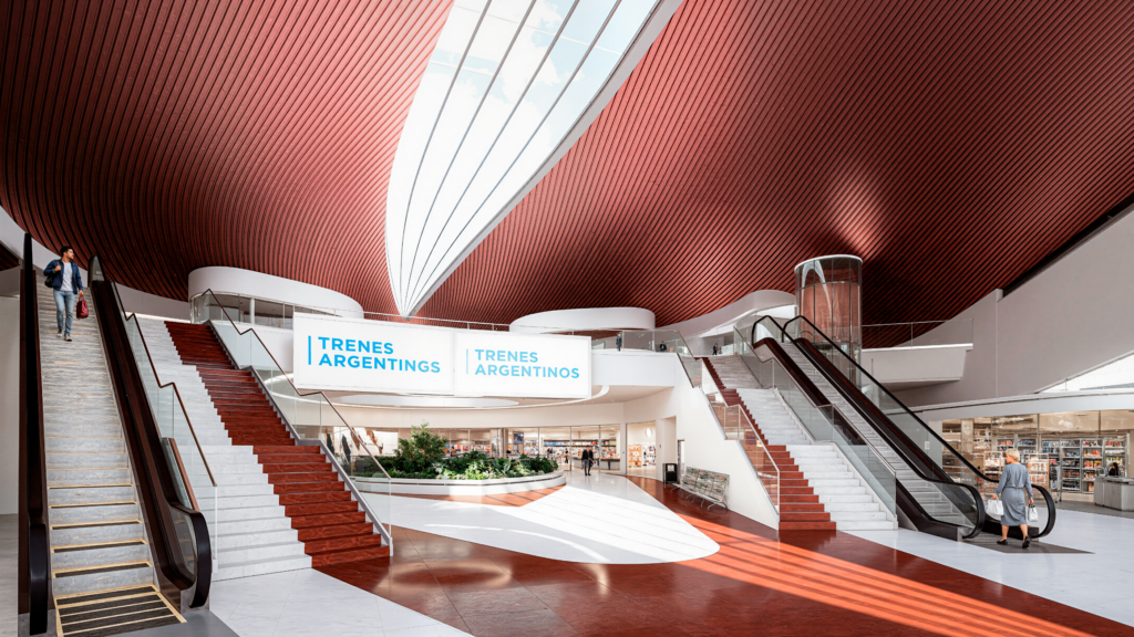 Inspirada en la flor de Ceibo, símbolo patrio, esta estación se alza como un gesto de identidad nacional y modernidad, conectando eficientemente las líneas Mitre, Belgrano Norte y San Martín con el subte H, la futura línea F y nueve líneas de colectivo.