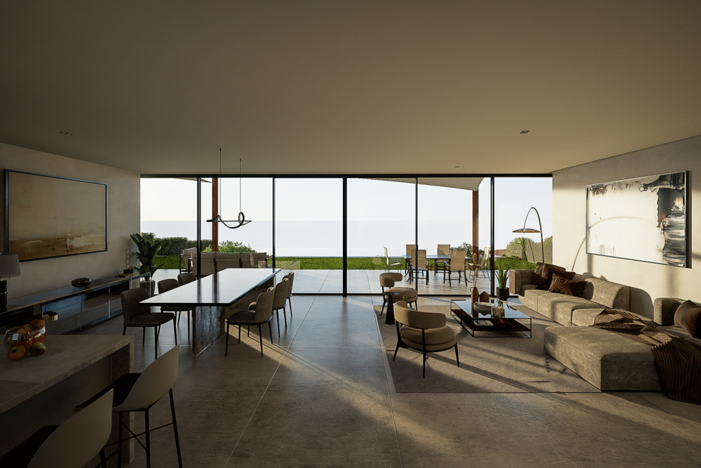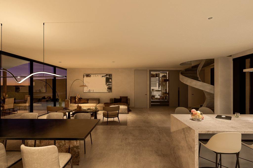 En un proyecto como este, donde la arquitectura dialoga directamente con el paisaje y el tiempo, el “valor” no es una abstracción estética: es una experiencia. Es la forma en que la luz entra en el salón por un ventanal corrido sin interrupciones; es la sensación de flotar sobre el acantilado; es la precisión de la escalera helicoidal que conecta todos los niveles con una línea pura y sin tensión estructural aparente.